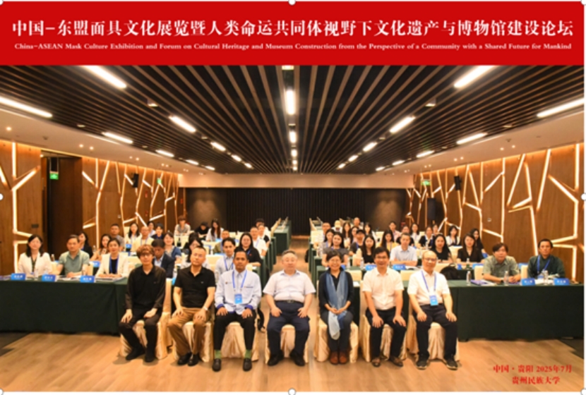 7月28日,作为2025中国-东盟教育交流周系列活动之一的“中国-东盟面具文化展览暨人类命运共同体视野下文化遗产与博物馆建设论坛”在贵阳顺利召开。来自韩国、马来西亚、越南等国家以及中国台北、澳门、北京、上海、云南、福建、湖南、广西、新疆、贵州等省市自治区的专家学者60余人齐聚一堂,共同探讨人类命运共同体视野下文化遗产与博物馆建设。贵州民族大学副校长崔海洋、贵州省民族博物馆副馆长舒彩前出席开幕式并致辞。开幕式由贵州民族大学民族学与历史学学院副院长郭国庆主持。