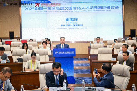7月25日,贵州民族大学承办的2025中国-东盟教育交流周“高层次国际化人才培养国际研讨会”在交流周永久会址东盟论坛厅召开。本次研讨会主题为“全球协同·教育创新——面向未来的国际化人才培养”,由教育部中外人文交流中心主办,贵州民族大学、中科浩博国际教育科技(北京)有限公司共同承办。来自中国、英国、柬埔寨、泰国、马来西亚等13个国家的专家学者200余人参会。