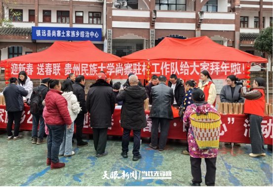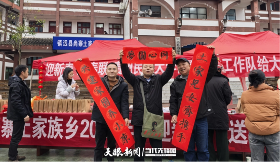 新春将至,年味渐浓。为弘扬中华优秀传统文化,营造欢乐祥和的节日氛围,2月6日,在镇远县尚寨土家族乡党委、政府统筹支持下,贵州民族大学尚寨驻村工作队组织“迎新春、送春联”暖心活动,为当地群众送上充满祝福的新春“文化年货”。