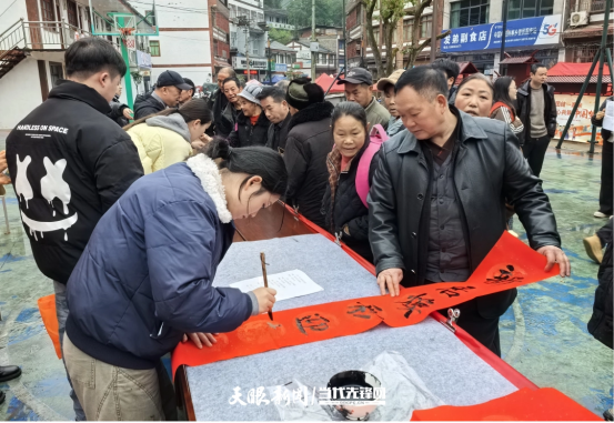 为让群众获得专属定制的春联,活动还邀请当地乡贤代表现场挥毫,与师生一同为乡亲们书写祝福。现场人头攒动,欢声笑语不断,洋溢着浓厚的节日气氛。